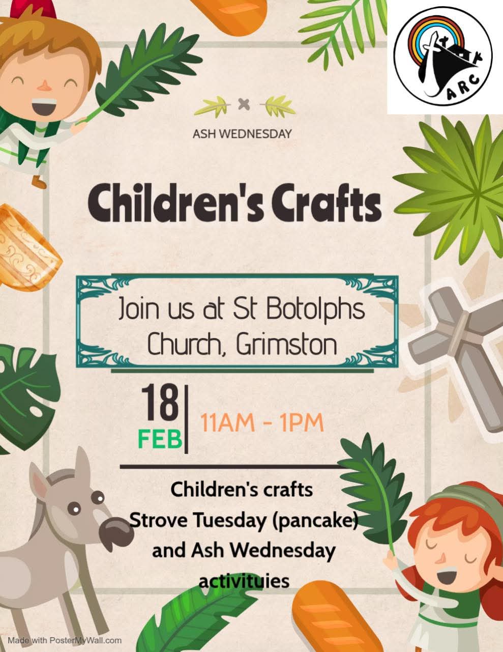 An ARC event, join us for special afternoon of SAsh wednewsday Childrens activities and (Shrove Tuesday) Pancakes.